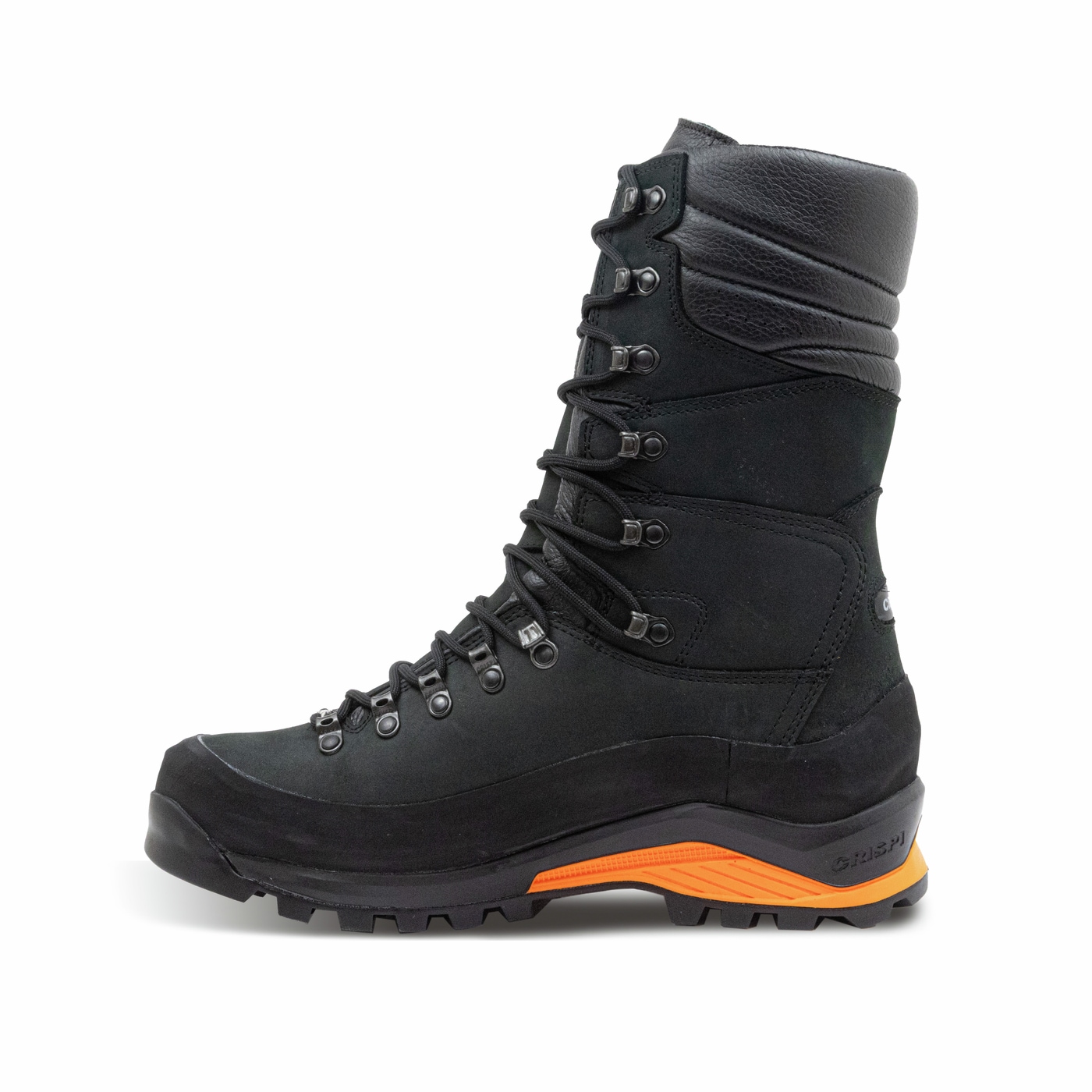 Dette er en høy jaktstøvel som er utviklet med fokus på lav vekt, og samtidig ivareta en robusthet som egner seg for krevende turer. Støvlenes overdel er laget i vannavstøtende fullnarvet Nubuck - lær, og de har Gore-Tex Dual Tech - membran i kombinasjon med slitesterkt Gore-Tex Ultimate Cordura - membran foran ved tær og bak ved hælen. Kombinasjonen av dette fører til en slitesterk støvel som holder deg tørr på beina.