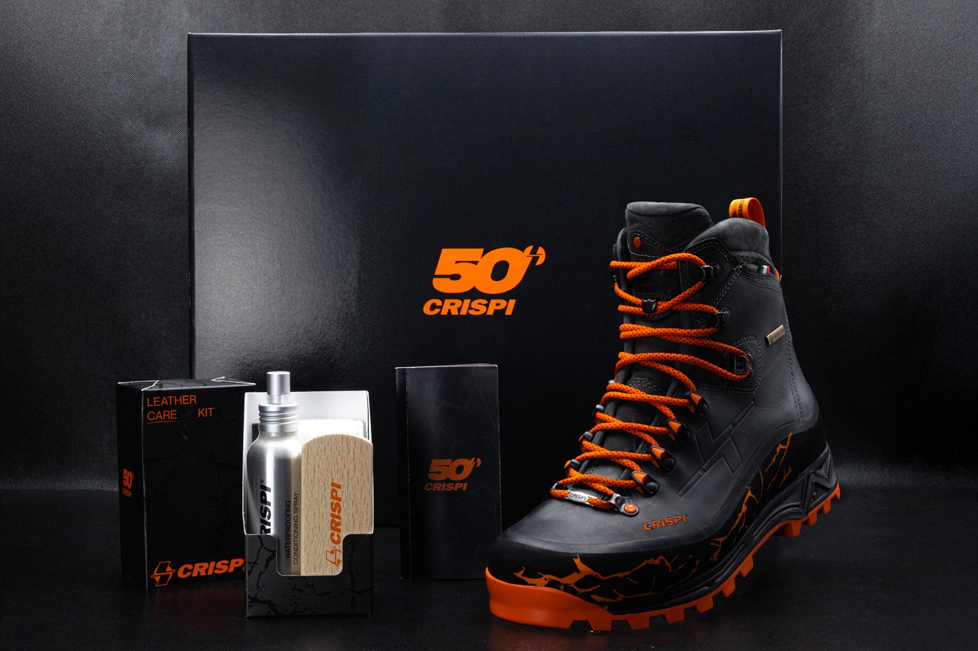 Femti år med lidenskap, dedikasjon og innovasjon. CRISPI® feirer et halvt århundre med fremragende kvalitet med en eksklusiv og spesiell jubileumsmodell av støvelen: NEVADA LEGEND 50th ANNIVERSARY. Den legendariske støvelen har blitt et symbol på 50-årsjubileet i en spesialutgave med ny farge: den originale oransje CRISPI®-fargen kombineres med sort – merkets to signaturfarger. I tillegg symboliserer "50th"-mønsteret på gummiranden en sprukken stein: den forvandlede steinen blir et symbol på positiv slitasje.