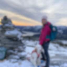 Irene bor i Namdalen sammen med sine to engelske settere, Alias på 5 år og Lumi på 7 mnd. Disse to er en stor motivasjon for jakt- og friluftlivsinteressen hun har. I naturen byttes stresset ut med en egen ro, og hun får enpause fra en hektisk hverdag med full jobb og andre aktiviteter. Irene er ivrig på turer i nærmiljøet, men iløpet av året blir det fort noen litt lengre og utfordrende turer enn hva fjellene i Namdalen kan by på. Favorit turen så langt er Romsdalseggen. Irene er aktiv med jaktprøver og utstilling, i tillegg til lidenskapen som er fuglejakt og trening med egne hunder.Hun jakter det aller meste hvis muligheten byr seg, og felte sitt første storvilt høsten 2020. Titan er Irenes’ ultimate favorittsko, da den er lett på foten og har høyt skaft som gir god støtte i all slags terreng. På kortere turer er det Veslpiggen som blir mest brukt.